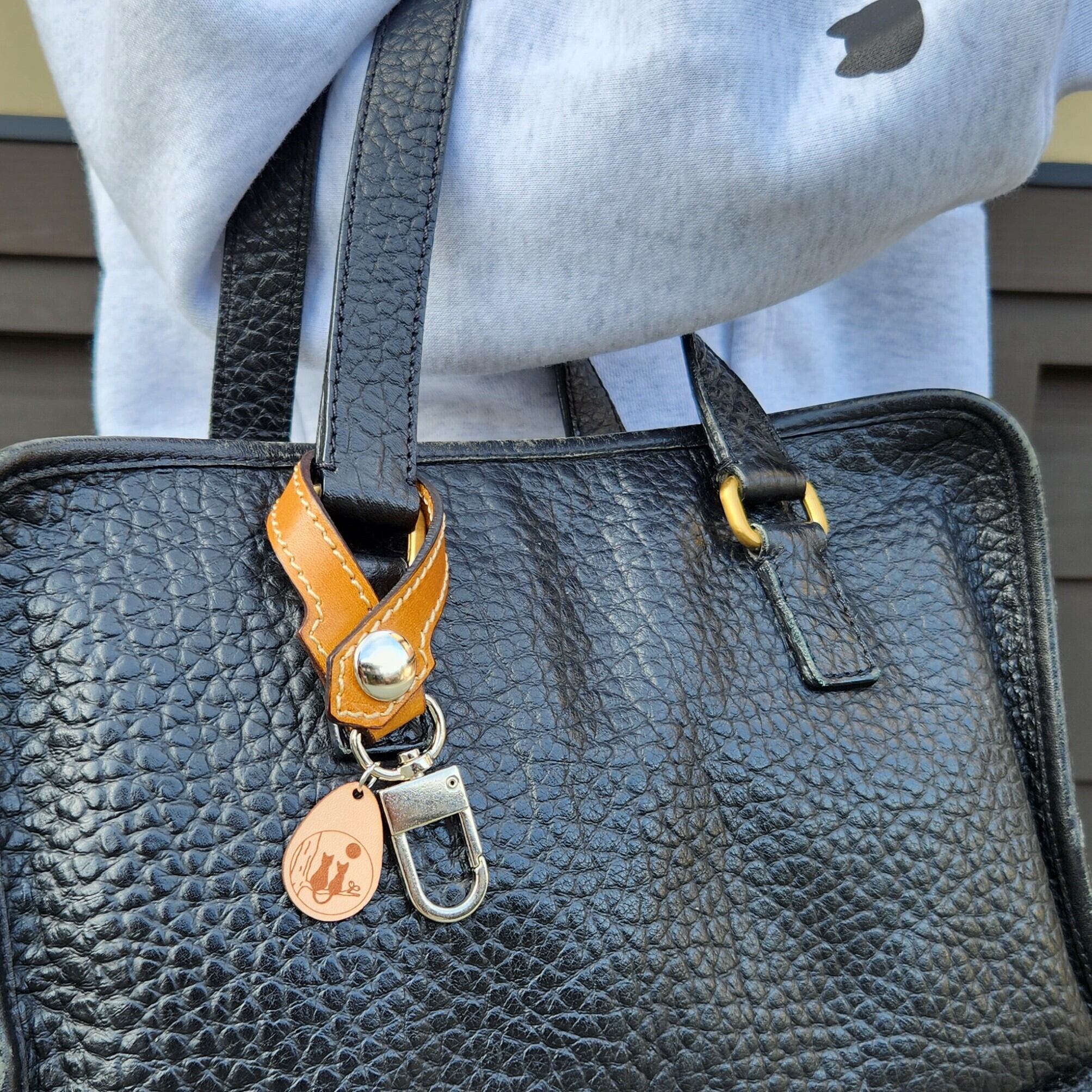 猫の月さくらやまのロゴマークを刻印したバッグホルダーです。